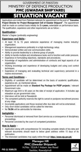 Candidates, if you are seeking Project Management Cell of Gwadar Shipyard Jobs, November 2025, yes. Then it would help if you tried to complete this Project Management Cell of Gwadar Shipyard Jobs because here you can easily apply for this vacancy: Executive Project Director.